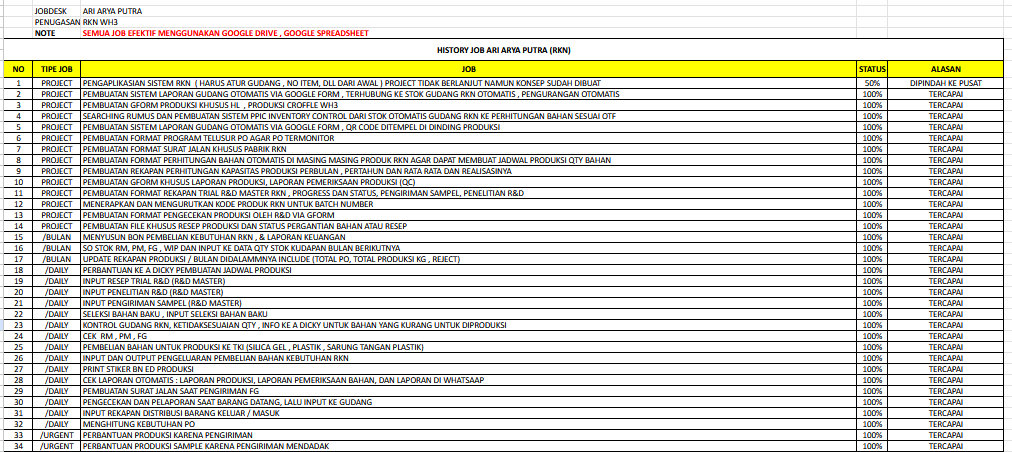 - Created production result forms and Excel-based recipe usage history records.
