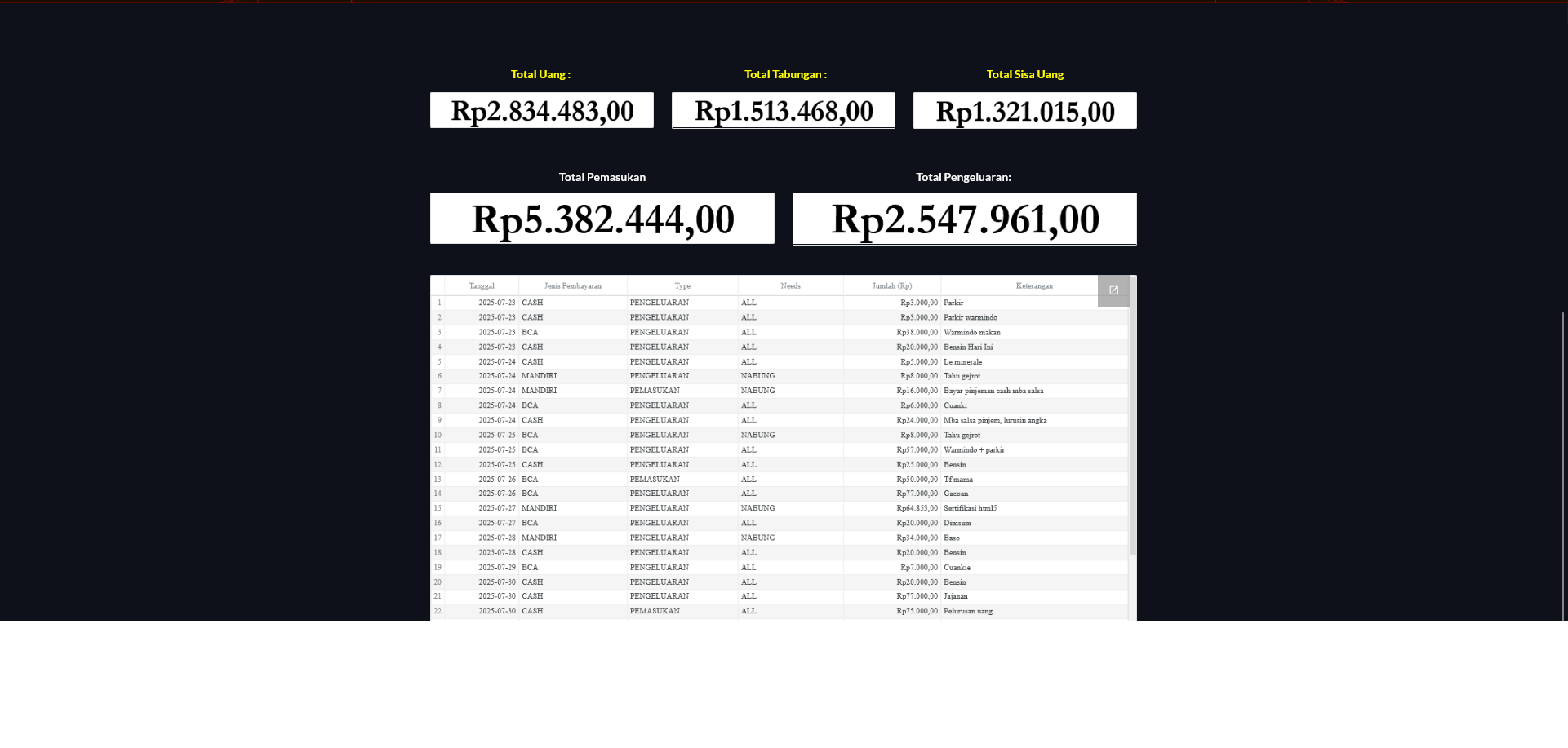 Google Spreadsheet as the database. It functions as an integrated finance management system to